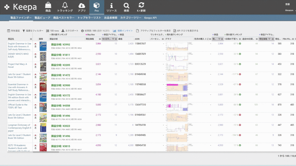 ASIN以外のカラムもKeepaで出力することで瞬時に登録できます